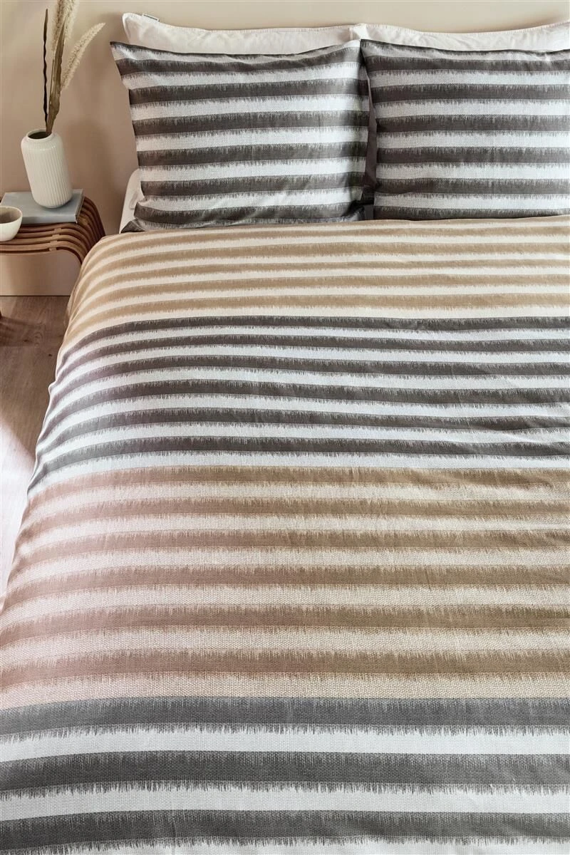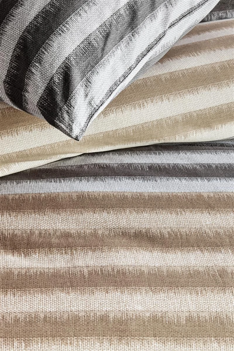Trendy dekbedovertrek Misha maakt je slaapkamer helemaal van deze tijd. Het overtrek bestaat uit moderne speelse strepen op een ondergrond van een stofstructuurprint. Banen in warme tinten worden afgewisseld met stevigere kleuren. Door de satijnweving heeft het overtrek een chique glans en voelt het heerlijk zacht aan.
