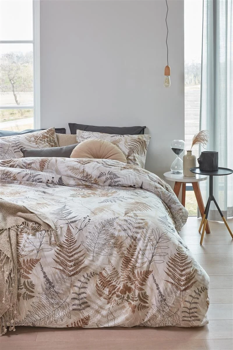 Het dekbedovertrek Tatum is een voorbeeld van een duurzamer dekbedovertrek. Dit overtrek is gemaakt uit zowel bamboe als katoen. Het overtrek heeft een botanische print van een mix van diverse bladeren van onder andere varens die transparant over elkaar geplaatst zijn. De schilderachtige textuur op de ondergrond maakt het helemaal af. Beddinghouse wil mooie collecties ontwerpen waarbij er rekening wordt gehouden met mens en milieu. Daarom is Beddinghouse lid van het Better Cotton Initiative, met als doel de katoenteelt wereldwijd te verbeteren. Bamboe wordt gemaakt van vezels die worden gewonnen uit de bamboeplant, die een natuurlijke en snelle groei heeft. Het is bekend dat bamboe de bodemvruchtbaarheid verbetert, bodemerosie vermindert en CO2 absorbeert. Bamboe is van nature antibacterieel en vereist daarom geen gebruik van pesticiden tijdens de teelt. Dit dekbedovertrek is gemaakt van 50% bamboe en 50% katoen. Bamboe is van nature antibacterieel en absorbeert tot 70% meer vocht dan katoen, waardoor het langer fris blijft. Dit bamboe/katoenen dekbedovertrek is geschikt voor alle seizoenen: de stof is zeer goed ademend waardoor het in de zomer koel aanvoelt en de isolerende eigenschappen zorgen voor een comfortabele warmte in de winter.