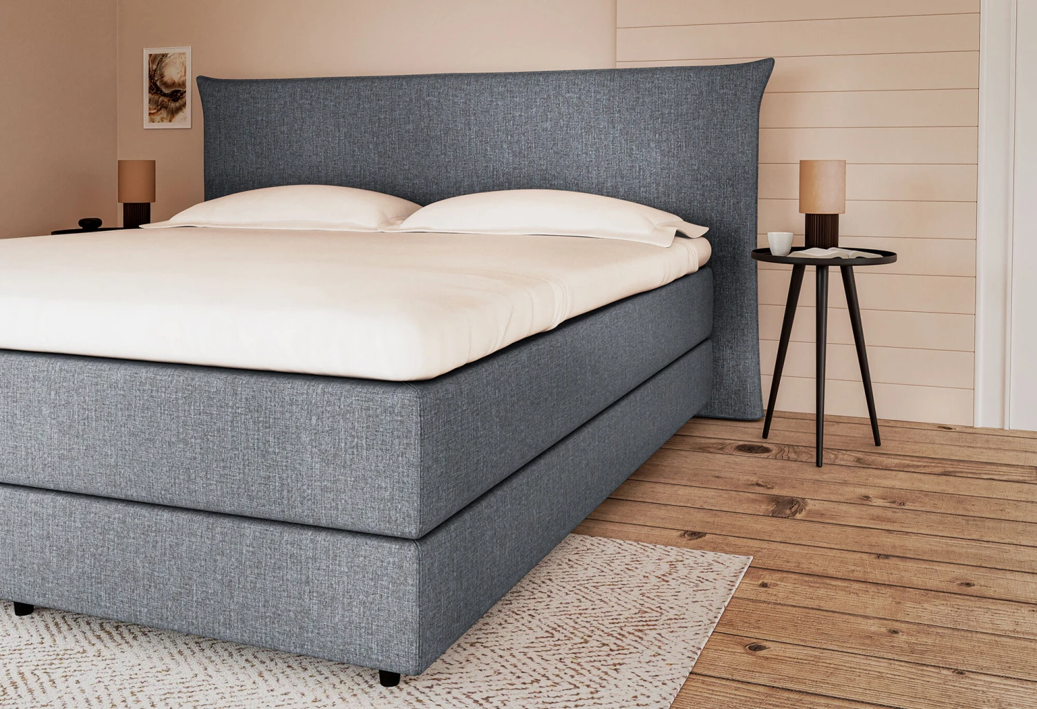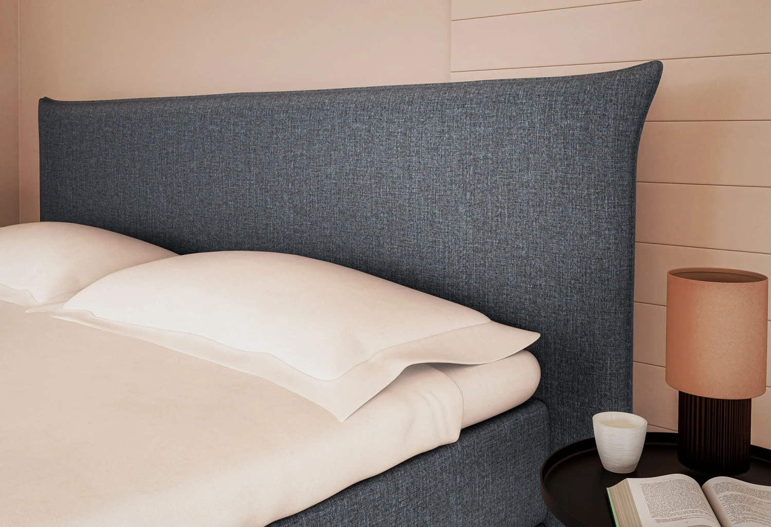 Het kussenvormige hoofdbord, ontwikkeld volgens de laatste trends, geeft sfeer aan je slaapkamer.