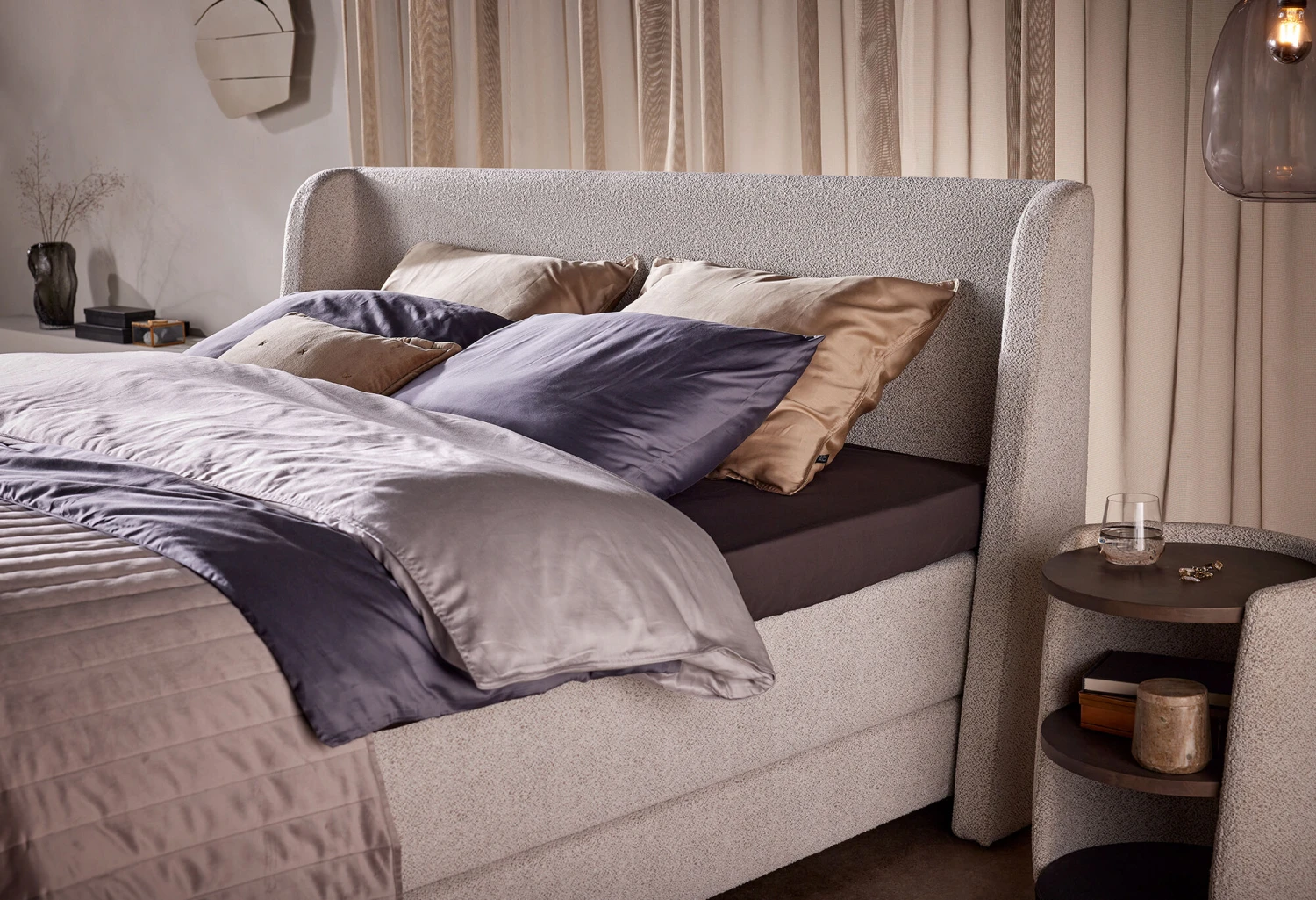 Het gebogen hoofdbord van Boxspring Night Milan is ontworpen volgens de laatste internationale trends.