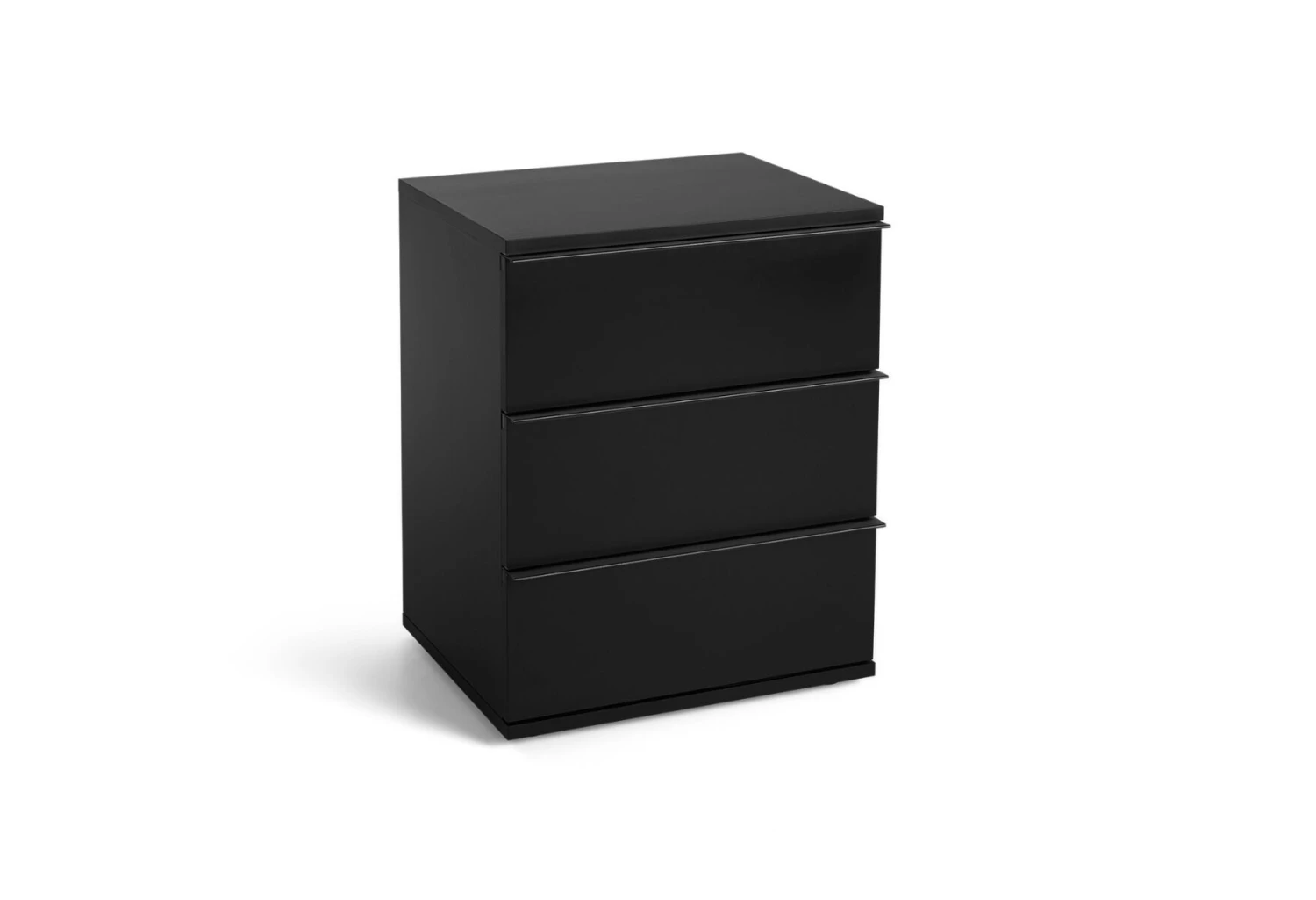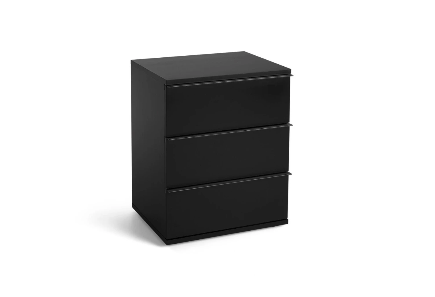 Deze houten Nachtkast Astoria biedt je voldoende opbergruimte, zodat je al je spulletjes vanuit bed makkelijk opbergt. De opbergruimte bestaat uit drie grote lades met stalen handgrepen.