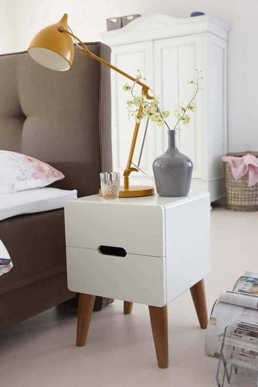 Dit trendy en tijdloos nachtkastje heeft een oogstrelend design. De strakke lijnen, het matte MDF en het warme eikenhout geven dit meubelstuk een bijzondere uitstraling. Een praktische en zeer mooie toevoeging aan het interieur.