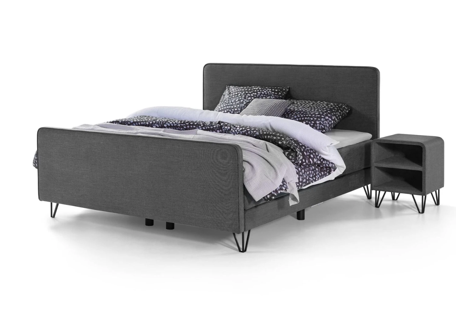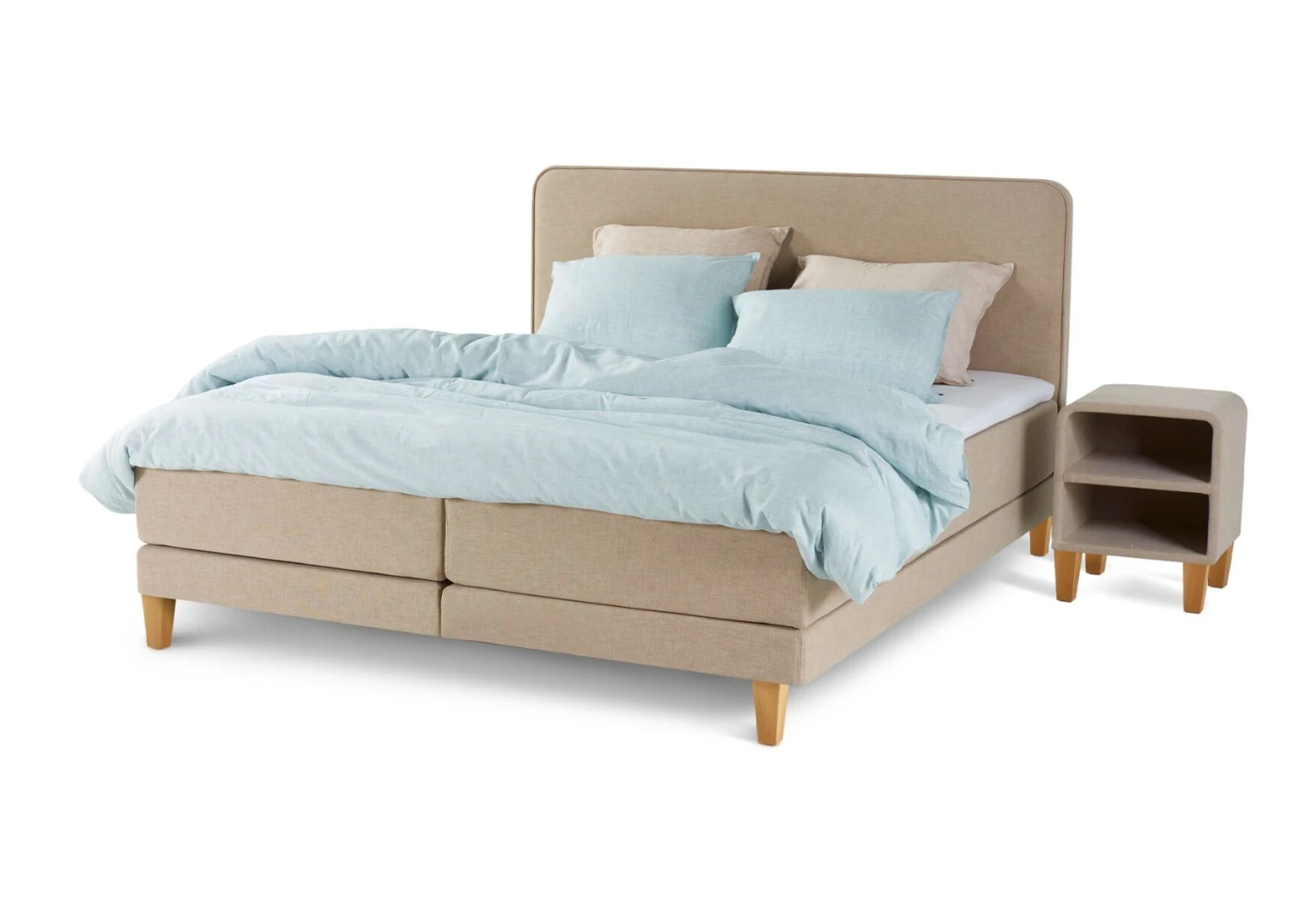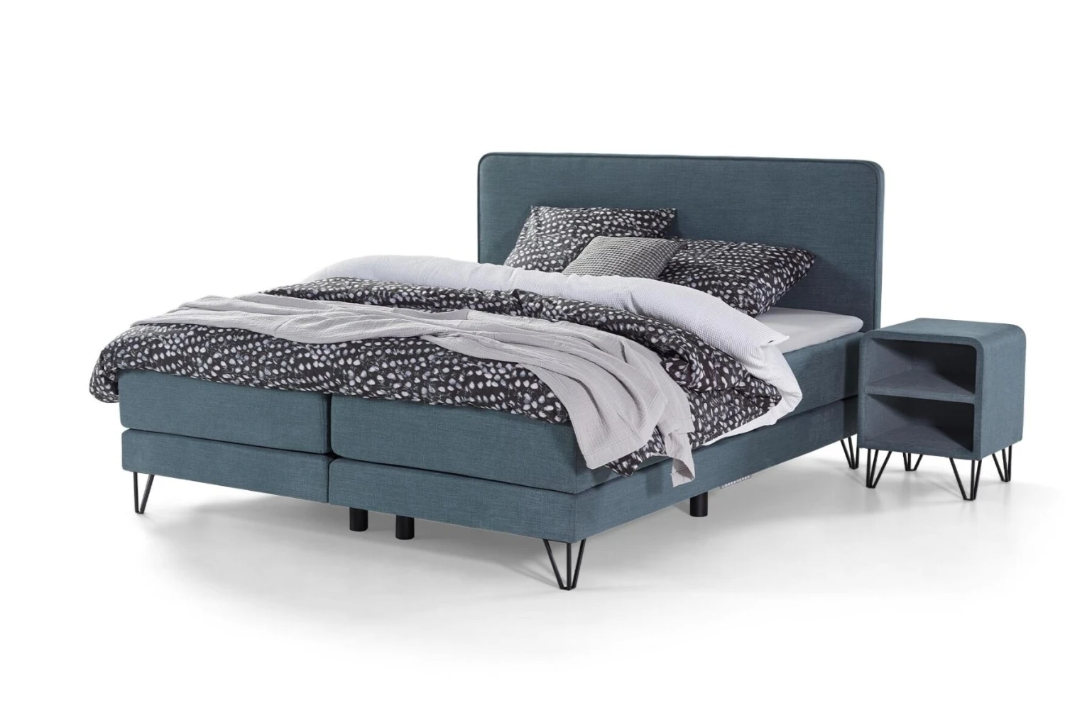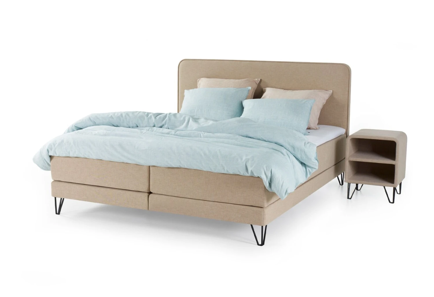 Nachtkast Desert is perfect te combineren met de Boxspring Home 103. Deze hebben namelijk dezelfde vormgeving. Zo komen de stoffering, afgeronde hoeken en stalen pootjes terug in het bed. Door de moderne uitstraling is het nachtkastje ook makkelijk te combineren met andere moderne boxsprings.