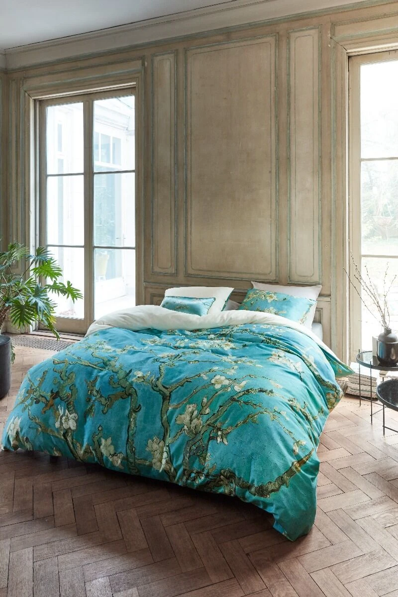 Vincent schilderde als cadeau een van zijn lievelingsonderwerpen: grote, bloeiende takken tegen een blauwe lucht. Hij schilderde het naar aanleiding van de geboorte van zijn peetzoon, die ook naar hem vernoemd werd, Vincent Willem. Als symbool voor het jonge leven koos Vincent de takken van de amandelboom, een van de vroegst bloeiende bomen, die reeds in februari de lente aankondigt. Met het onderwerp, de scherpe omlijningen en de plaatsing van de boom in het beeldvlak liet Van Gogh zich inspireren door de Japanse prentkunst. Het dekbedovertrek is gemaakt van 100% katoensatijn. De totale lengte van een Beddinghouse katoensatijnen dekbedovertrek is 260 cm. Het overtrek kan gewassen worden tot 60 graden, is geschikt voor de wasdroger en kan gestreken worden.